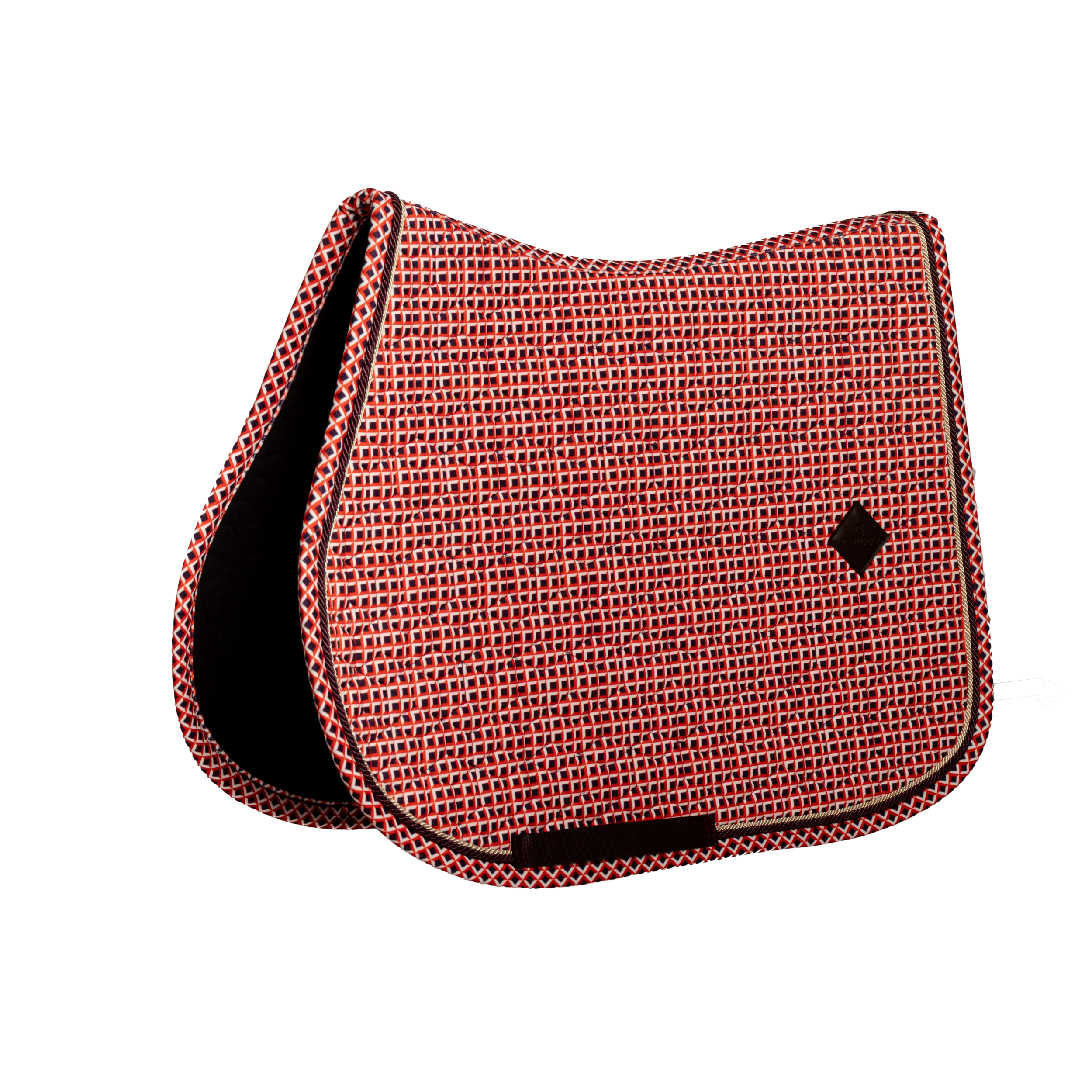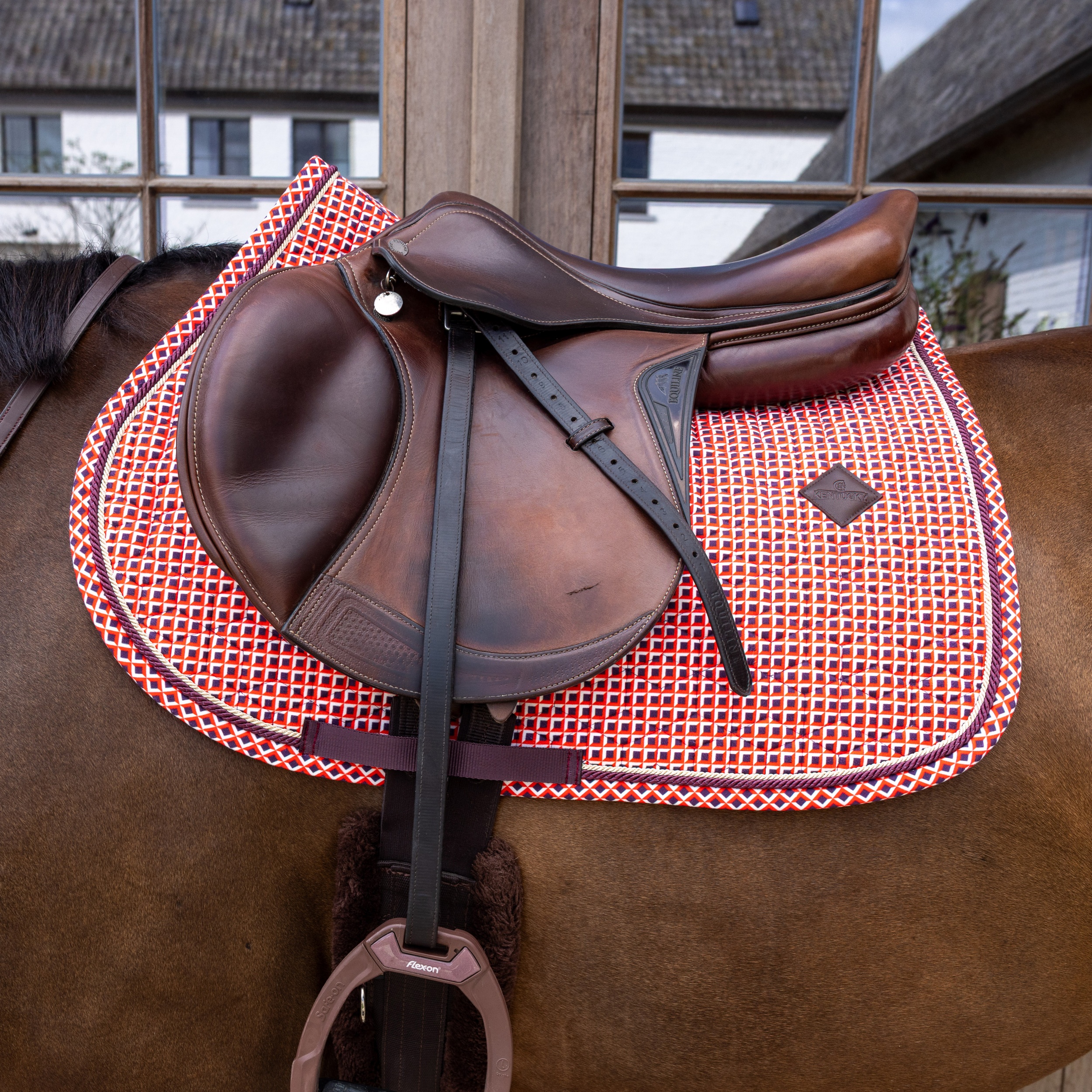 Dit limited edition zadeldoek valt op door zijn originele prints op de fluwelen stof, waardoor hij uniek is in de collectie. Het sterstiksel en de elegante koorden benadrukken het hoogwaardige vakmanschap, terwijl de functionele, sneldrogende voering zorgt voor optimaal comfort van je paard tijdens elke training. Kies tussen de dressuur- of springvorm die bij jouw discipline past, en maak de look compleet met het bijpassende oornetje ref. 42637 voor een verfijnde, harmonieuze uitstraling.