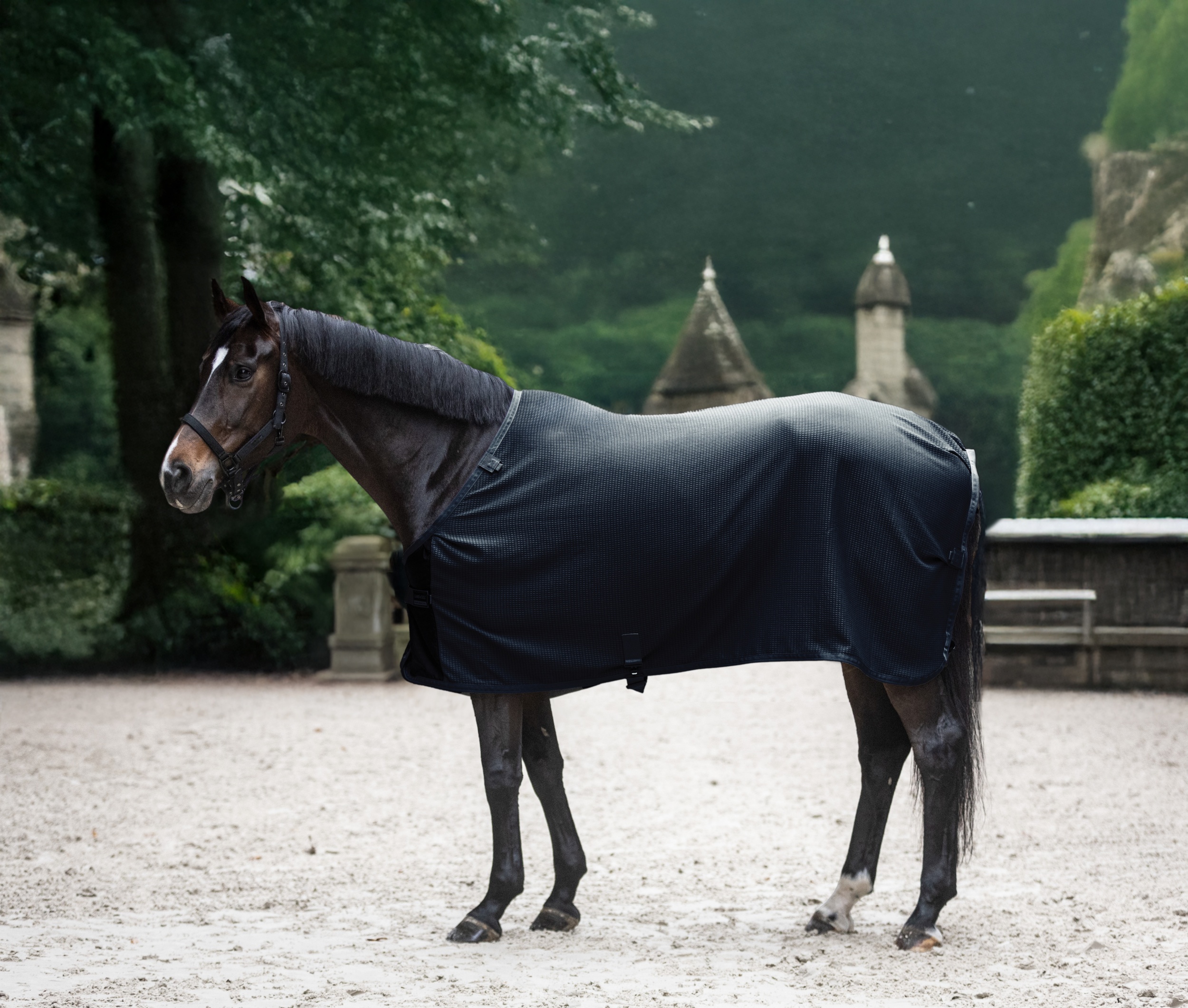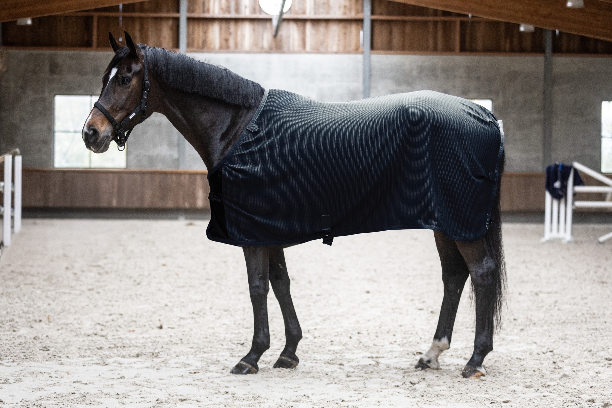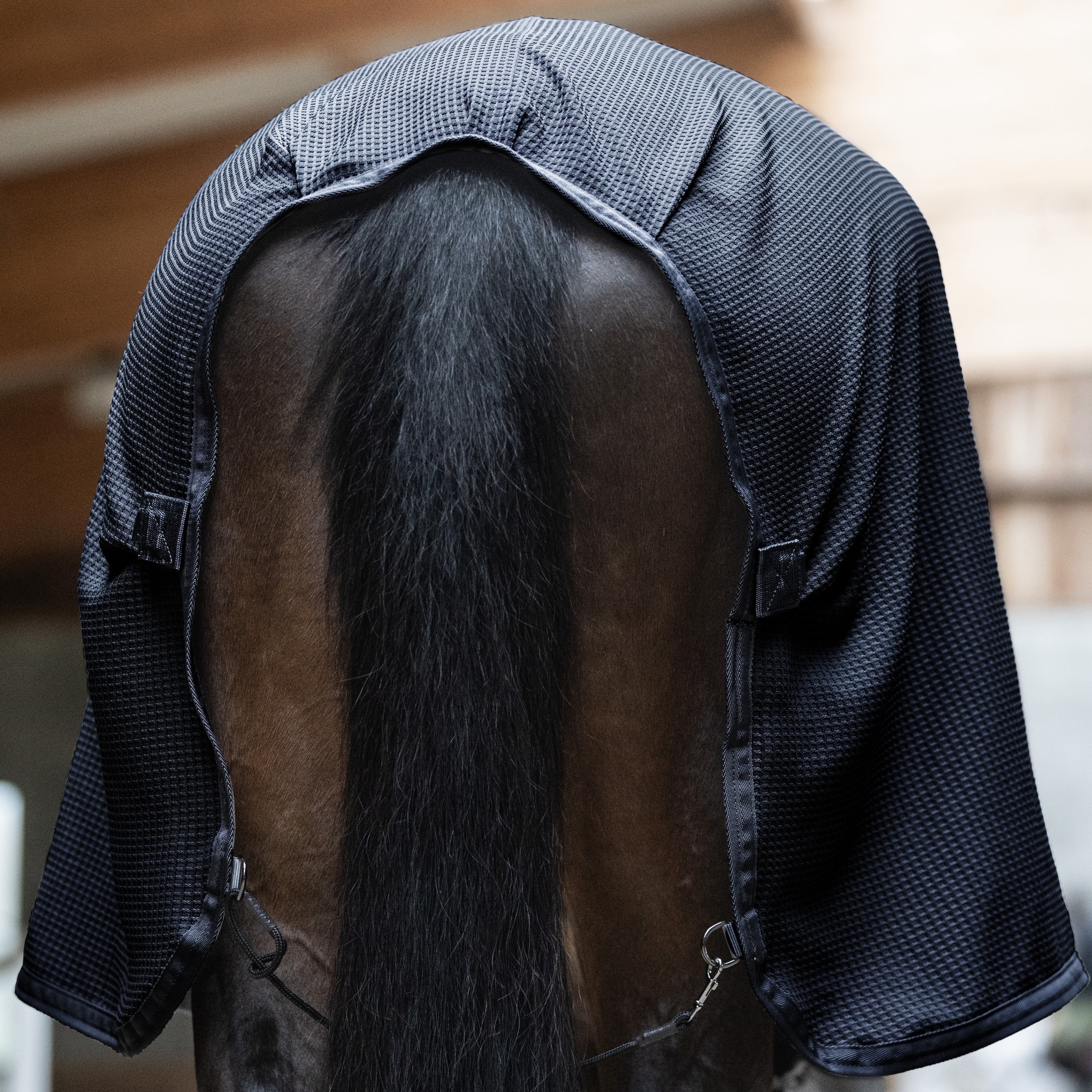 Deze 2-in-1 cooler en onderdeken met een wafel structuur is veelzijdig en milieuvriendelijk. Het kan alleen worden gebruikt of in combinatie met het Armadillo buitendeken. Gevoerd met LAMI-CELL EnviroGreen® Bamboe Houtskool binnenvoering dat gemaakt is van gerecycleerde garen en natuurlijk bamboe-houtskooltextiel, biedt dit deken duurzaam comfort voor jouw paard. Het is voorzien van klittenbandsluitingen in de nek en achterhand voor een veilige verbinding met een buitendeken en een afneembare singel voor extra gemak. De extra vulling bij de schoft en voorkant zorgt voor extra bescherming en comfort voor jouw paard.