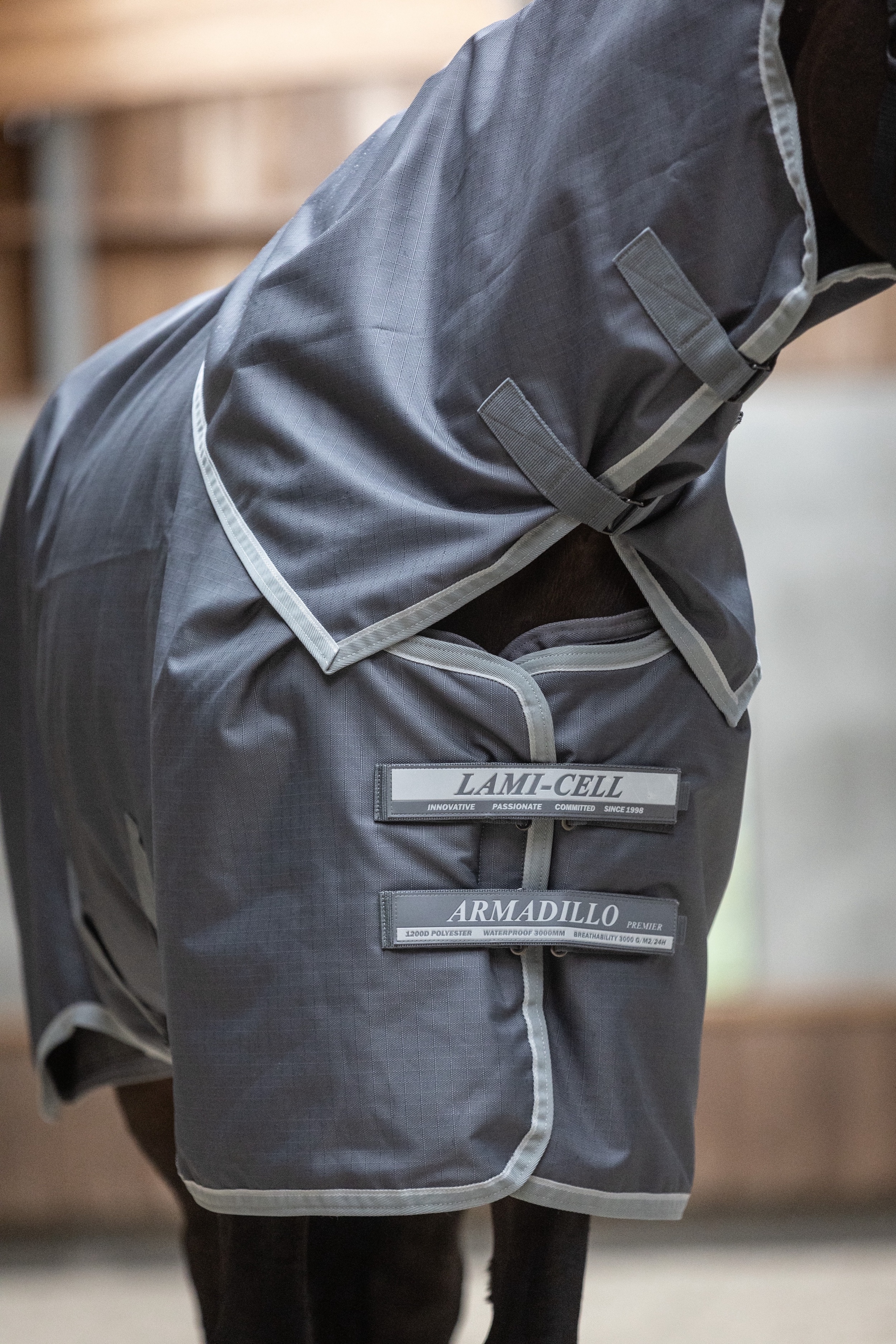Maak jouw Armadillo buitendeken compleet met dit waterdicht nekstuk, ontworpen voor maximale bescherming en comfort. Gemaakt van duurzaam 1200D ripstop-materiaal, biedt het stevigheid zonder extra gewicht (0g). Met reflecterende banden voor verhoogde zichtbaarheid, kan het nekstuk ook gemakkelijk worden vastgemaakt op de deken met behulp van elastische klittenbandsluitingen voor een veilige pasvorm, zodat uw paard droog en beschermd blijft in alle weersomstandigheden