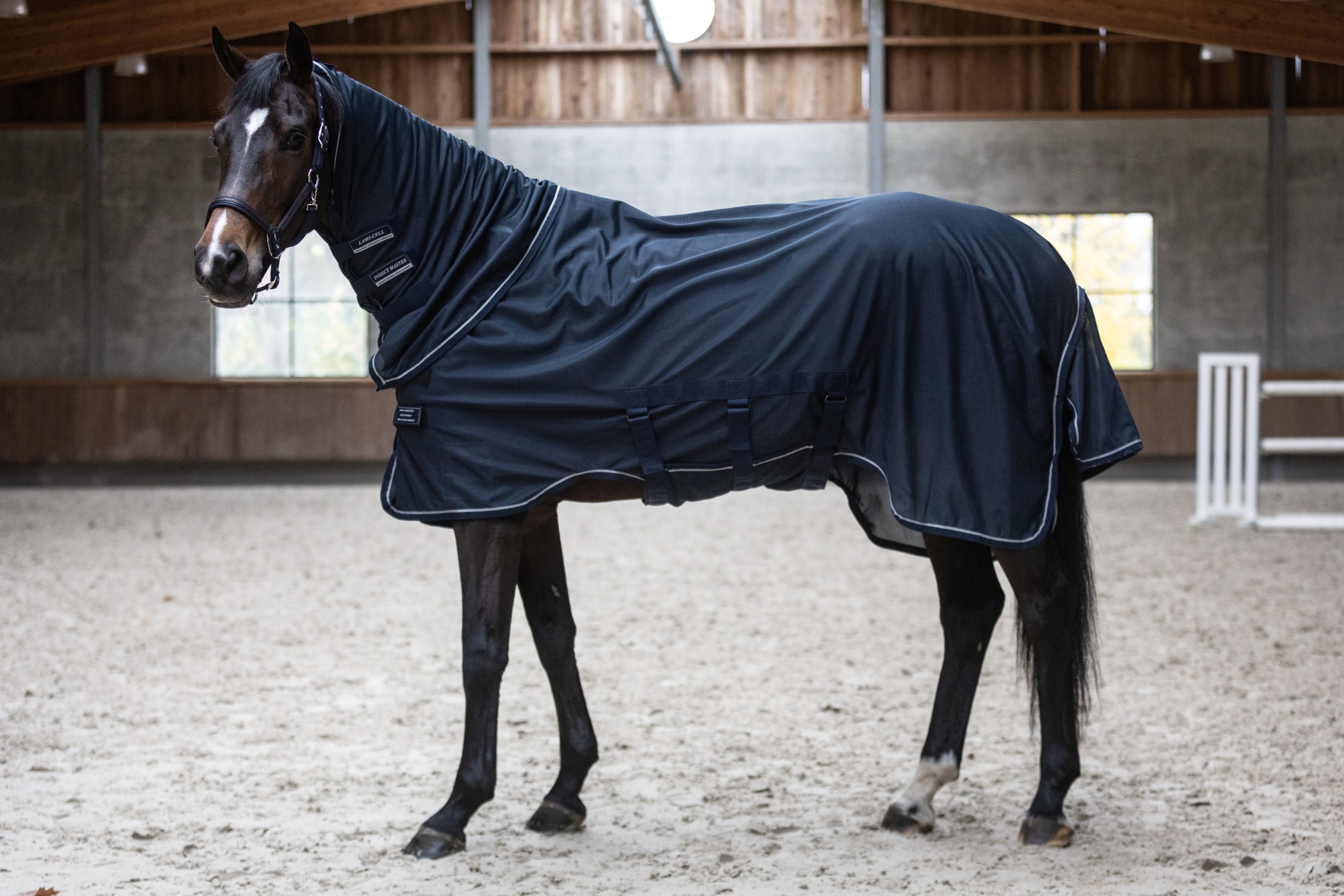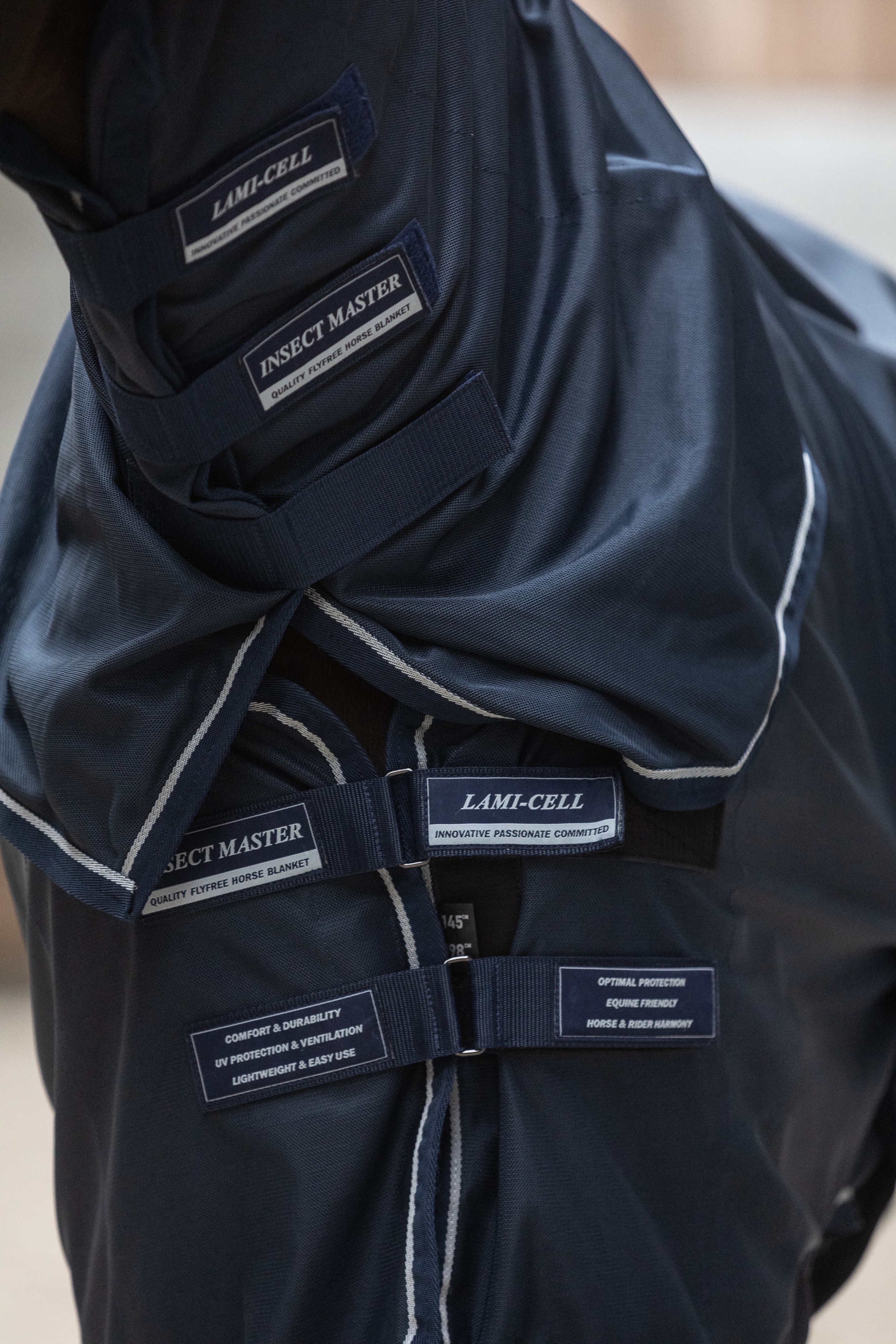 Het vliegendeken Insect Master biedt volledige dekking om het paard te beschermen tegen vervelende insecten met zijn duurzame en ademende interlock mesh-stof. Het deken biedt 80 % UV bescherming en heeft een afneembaar buikgedeelte en nekstuk voor aanpasbare bescherming, samen met een staartflap en een afneembaar staarttouw om het deken op zijn plaats te houden. Alle sluitingen zijn beveiligd met klittenband voor een comfortabele, verstelbare en probleemloze pasvorm. De innovatieve vorm en het ontwerp zorgen voor zowel superieure bewegingsvrijheid als de ultieme comfortabele pasvorm voor je paard. Je kan de look compleet maken met het bijpassende Insect Master vliegenmasker voor uitgebreide vliegenbescherming