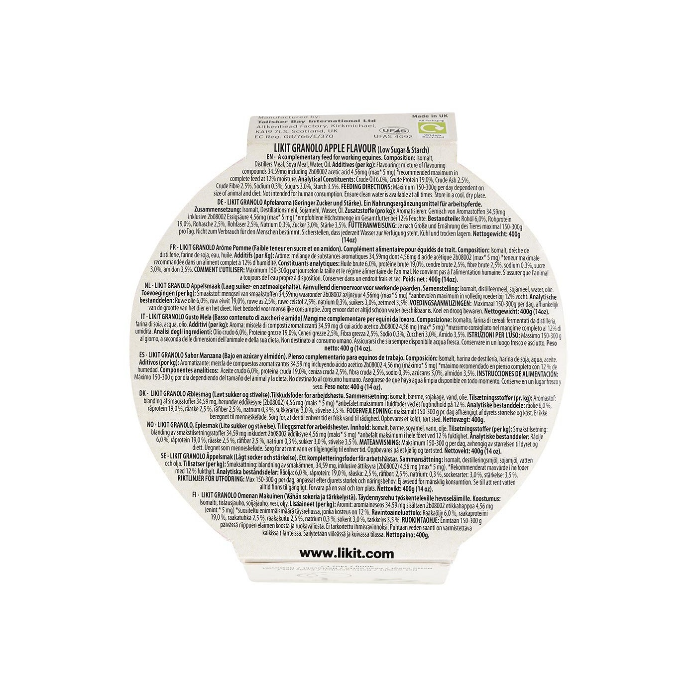 Deze smakelijke GranoLo liksteen met appelsmaak onderscheidt zich van de Likit Granola likstenen door het lage suikergehalte en lage zetmeelgehalte. De Likit GranoLo heeft een gebruiksvriendelijke verpakking die volledig recyclebaar is. Het is geschikt voor de Likit Boredom Breaker, artikel 829974 en de Likit houder, artikel 829979.