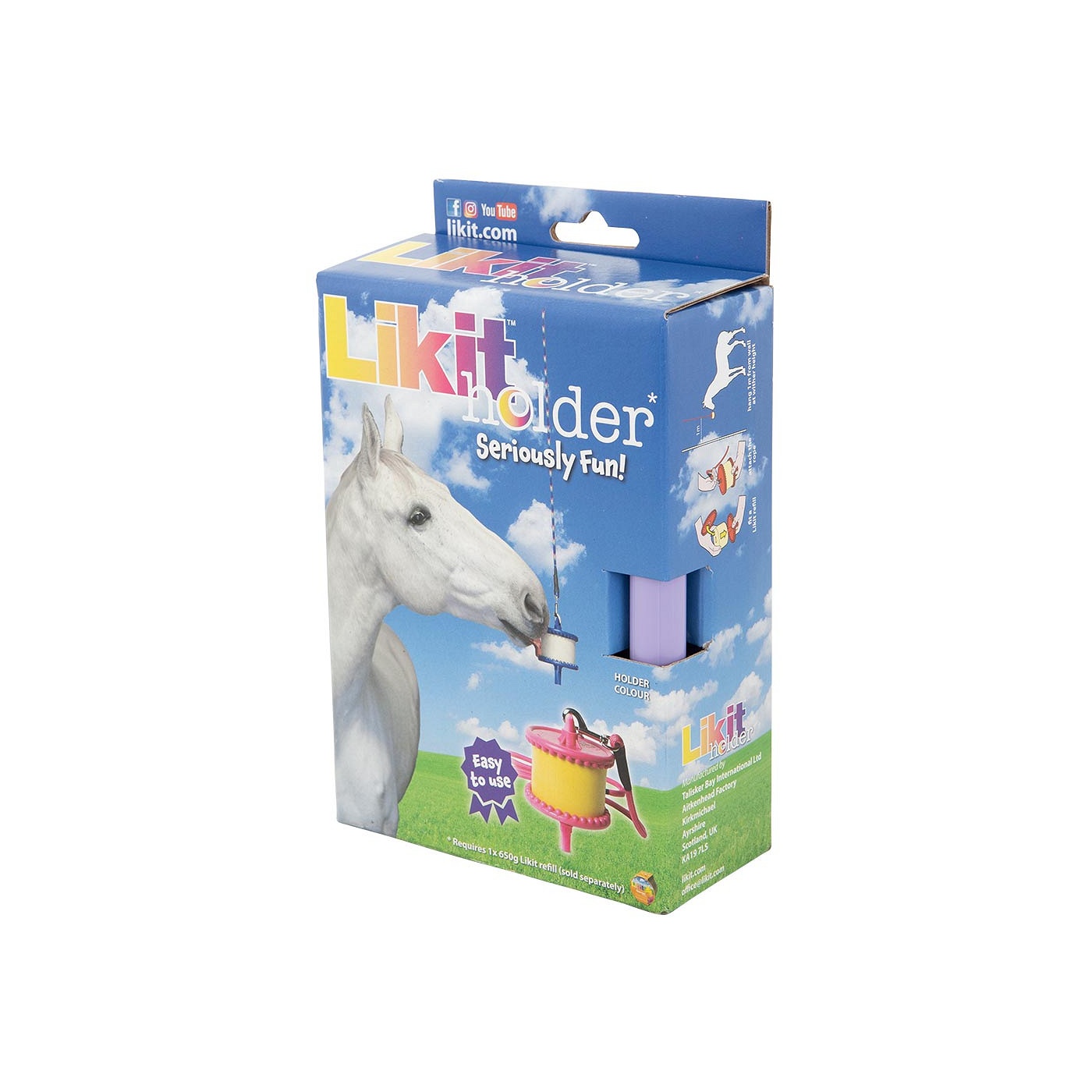 Kunststof Likithouder aan een touw. De Likithouder is geschikt voor Likit likstenen van 650 g. Hiermee heeft uw paard wat afleiding op stal. Exclusief likstenen.