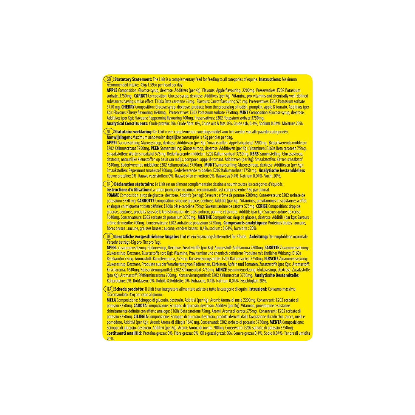 Een smakelijke beloning voor uw paard. U kunt eenvoudig stukjes van de reep afbreken. De repen zijn verpakt in een handige hersluitbare verpakking. 1 Toonbankdisplay bevat 9 blisters met 4 verschillende smaken: appel, wortel, kersen en mint. De Treat Bars worden per blister verkocht in de winkel. VE 9.