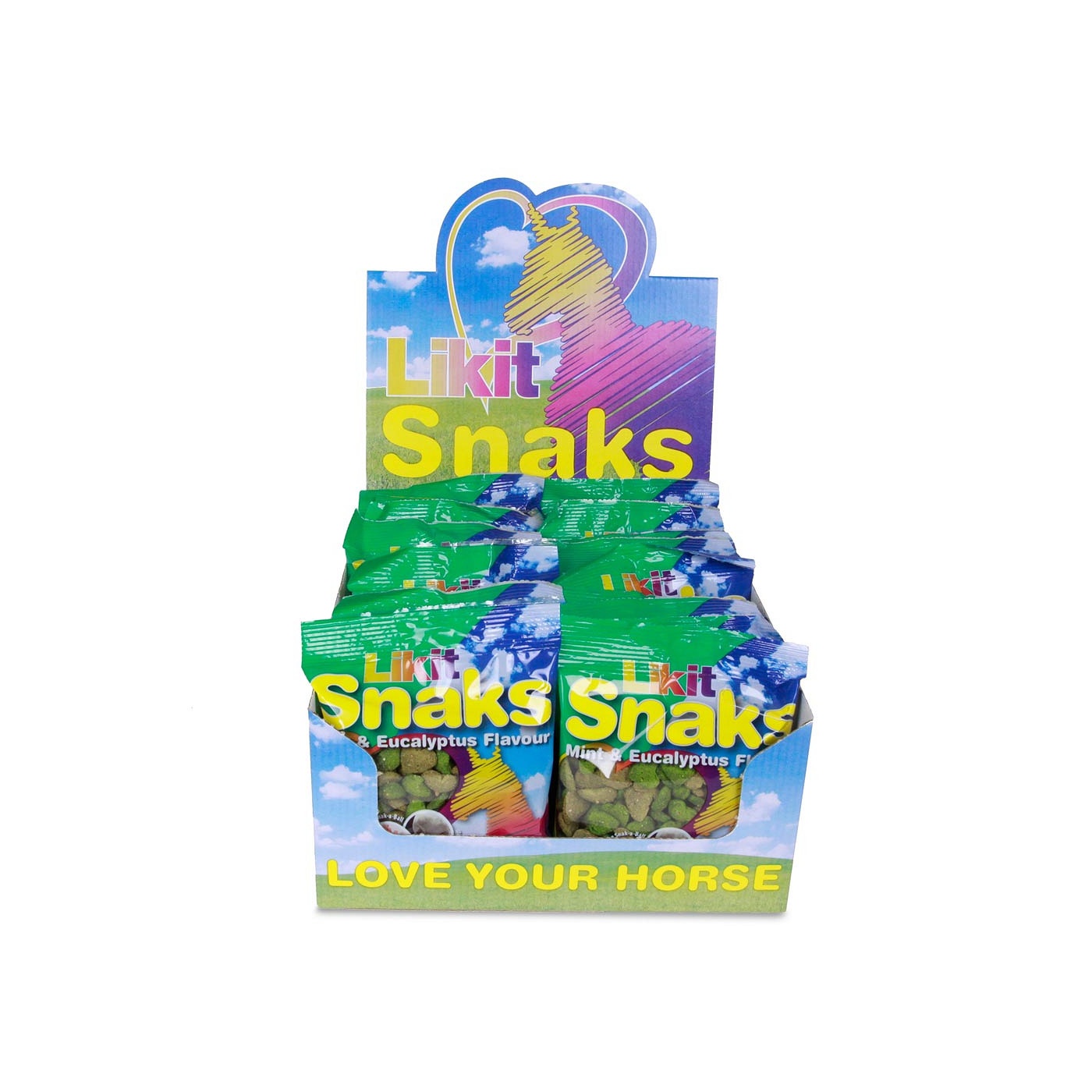 Dit smakelijke paardensnoepje kan zowel met de hand gevoerd worden als in de in de Likit voederrolbal Snak-a-Ball, artikel 829946, tegen stalverveling. De snoepjes zijn hartvormig en met mint/eucalyptus smaak. Ze bevatten alleen natuurlijke kleur- en smaakstoffen en bevatten weinig suiker. Display van 20 stuks. Zakje 100 g.