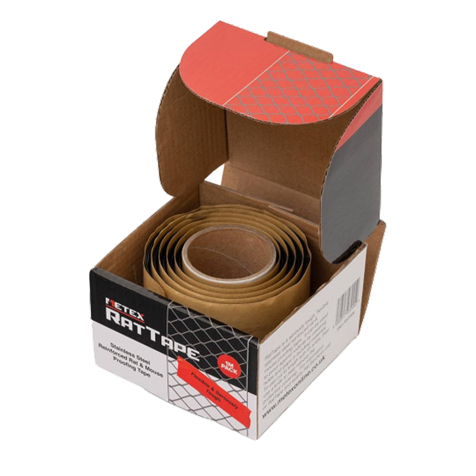 Deze speciale knaagdierbestendige tape wordt gebruikt om muizen en ratten buiten te houden. De tape heeft een hoogte van 50 mm en is opgebouwd uit 2 lagen butyl tape met daartussen zeer fijnmazig RVS gaas. Verkrijgbaar in 2 lengtes.