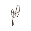 Dit praktische halster is gevoerd bij het kopstuk en de neusriem met zacht nubuck voor optimaal comfort. Daarnaast kan het halster bij de neusriem en aan beide zijden van het kopstuk versteld worden voor de juiste pasvorm. De set is voorzien van een musketonhaak