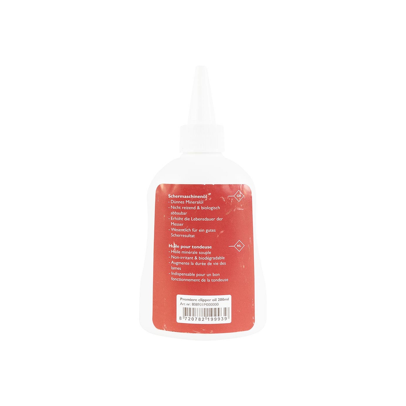Deze dunne minerale olie is speciaal ontwikkeld voor de Premiere scheermachines en trimmers. De olie verlengt de levensduur van de messen en is essentieel voor een goed scheerresultaat. De olie is niet irriterend en biologisch afbreekbaar. Inhoud 200 ml.