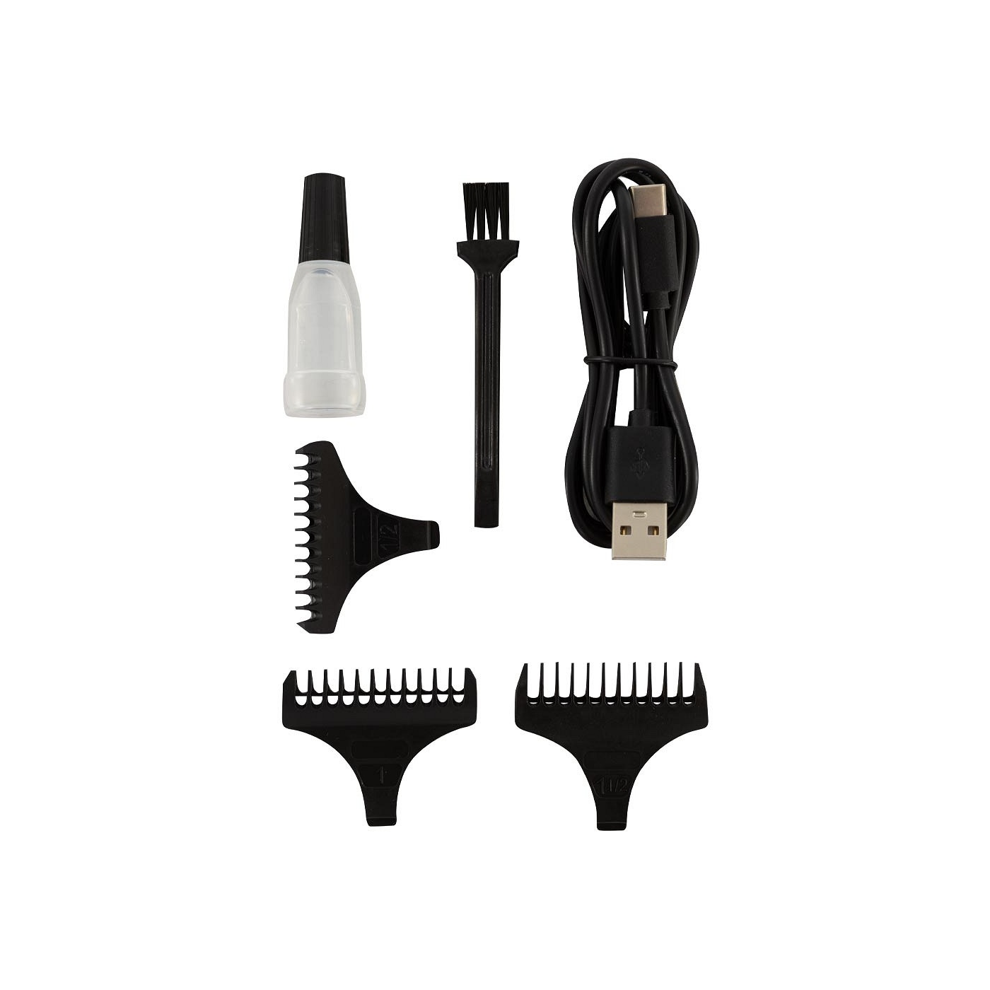 Inclusief: USB-laadkabel, drie afstandhouders (0.5/1/1.5 mm), een borstel en olie.