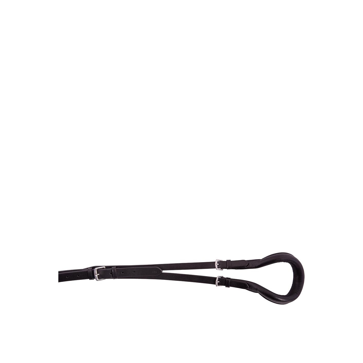 Lederen staartriem met rondgenaaide culeronde. De staartriem voorkomt dat het zadel naar voren schuift.