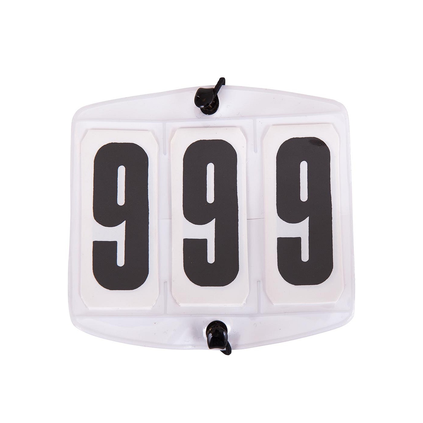 Startnummers vierkant 9.5 x 9.5 cm. Verwisselbaar van 000 t/m 999.