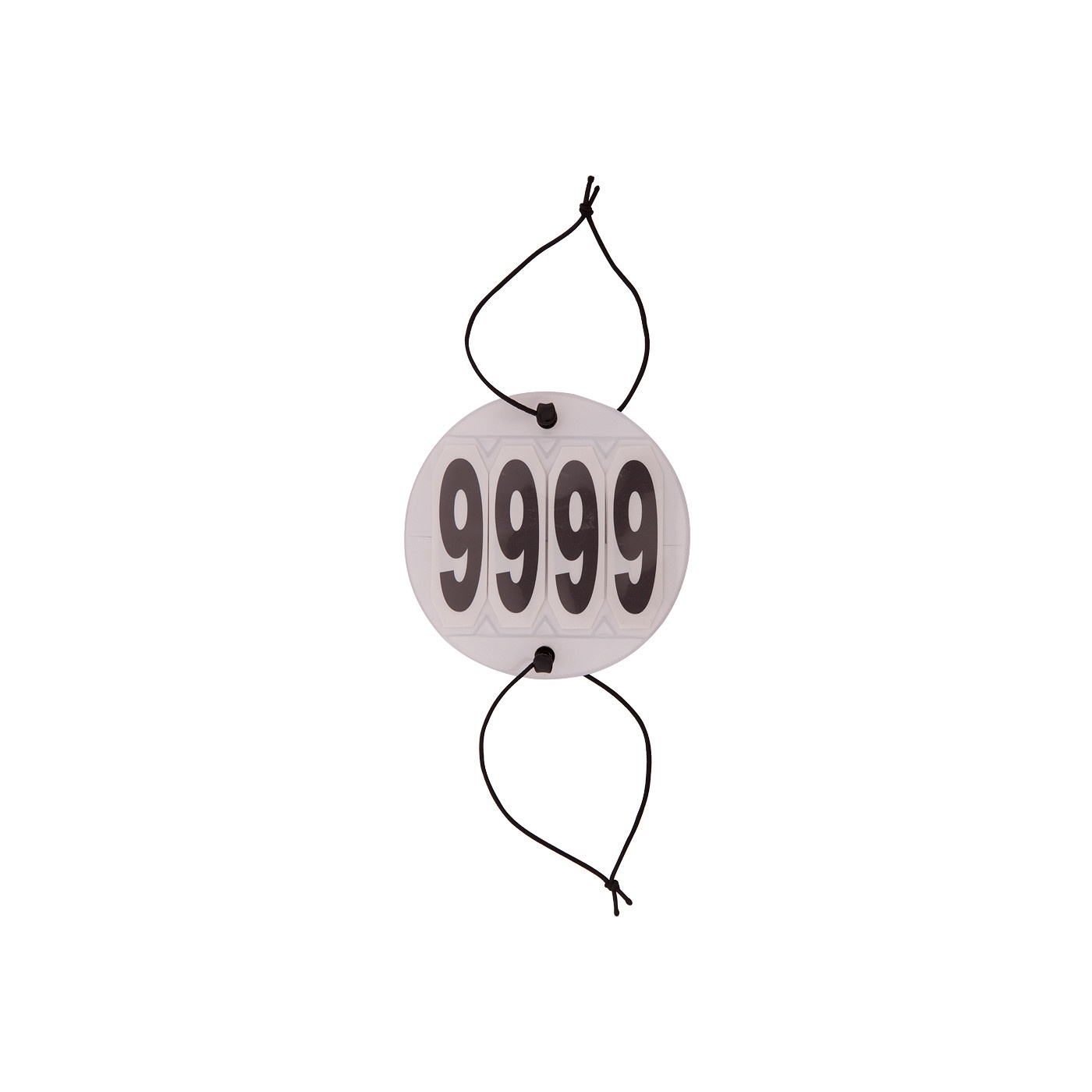 Startnummer in ronde plastic hoes, eenvoudig aan het hoofdstel te bevestigen met behulp van twee elastiekjes. Kan ook bevestigd worden aan het zadeldek met behulp van twee veiligheidsspelden (niet meegeleverd). De nummers zijn duidelijk leesbaar en verwisselbaar van 0000 t/m 9999. De hoes heeft een diameter van 10 cm. Per paar.