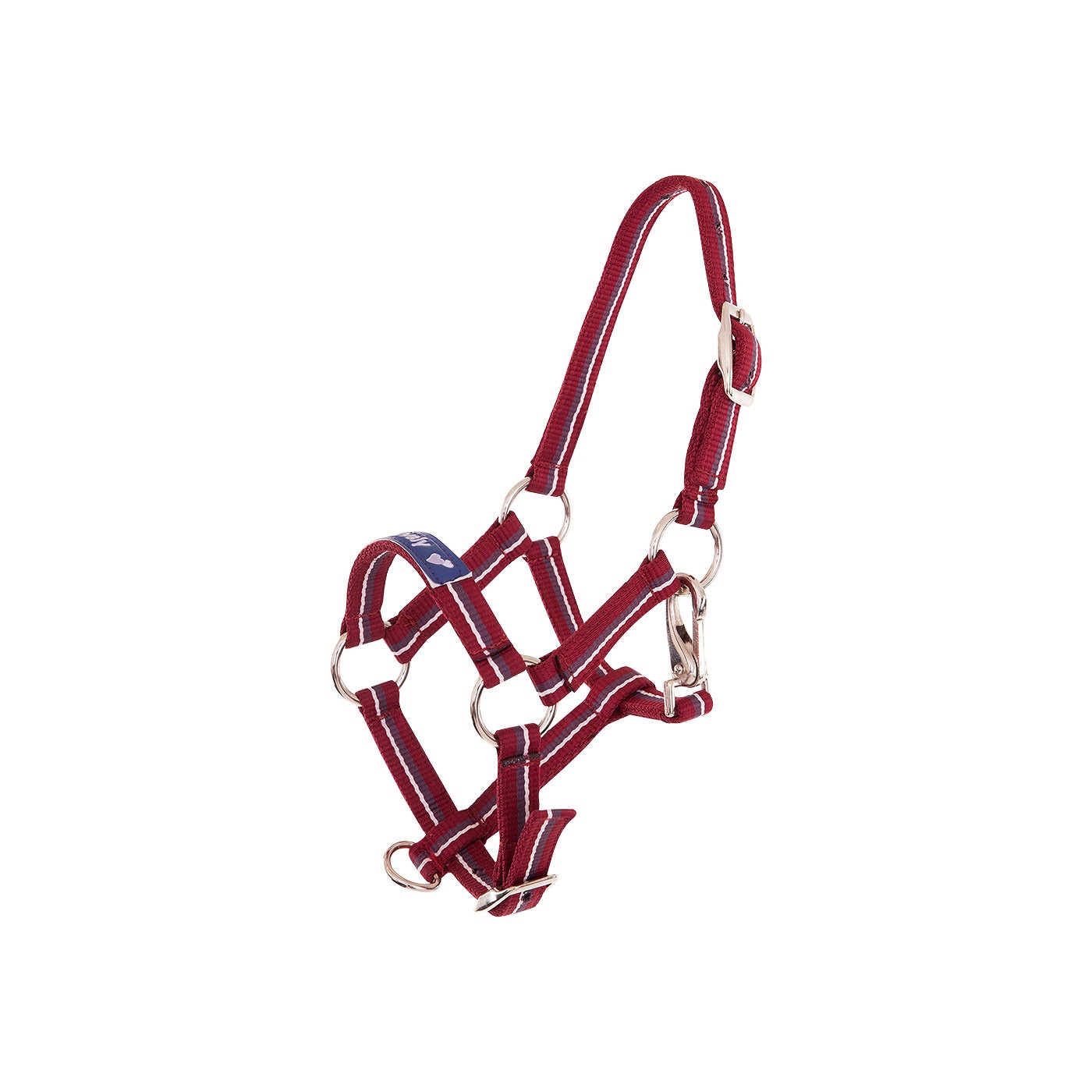 Driekleurig veulenhalster met smalle banden van gestreept polypropyleen. Zowel het kopstuk als de neusriem zijn verstelbaar met een gespsluiting. De neusriem is afgewerkt met een label met fun text. De keelriem is voorzien van een karabijnhaak. Het halster is voorzien van zinken fournituren met een zilverkleurige finish.