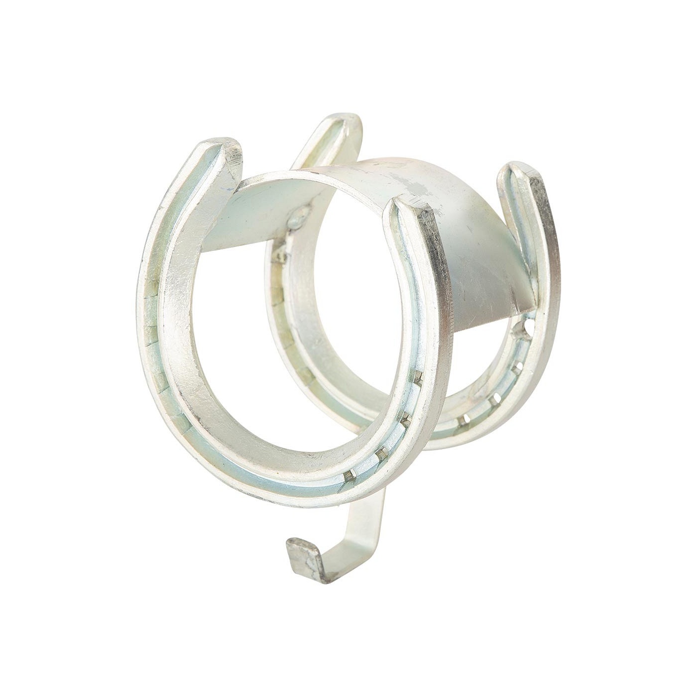Deze metalen hoofdstelhanger in de vorm van een hoefijzer is verkrijgbaar met een glanzende coating of in een zinken uitvoering en verdient een mooi plekje in de zadelkamer of aan de wand van je winkel.
