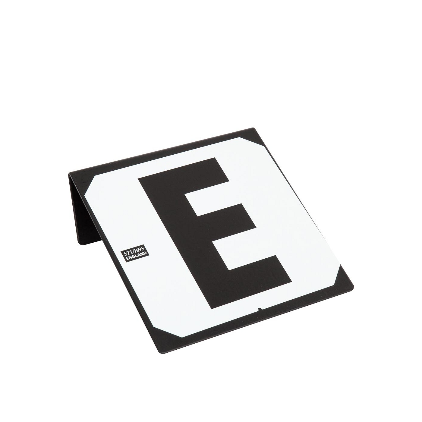 Klassieke manegeletters met een schuine achterkant waardoor vastschroeven niet meer nodig is. Door de hellende achterkant kunnen de letters gemakkelijk over rijbaan omheiningen tot wel 55mm dik gehangen worden. Door het zwaardere, stalen design blijven de letters ook als het waait hangen. De basis set bevat de letters A, B, C, E, F, H, K en M.