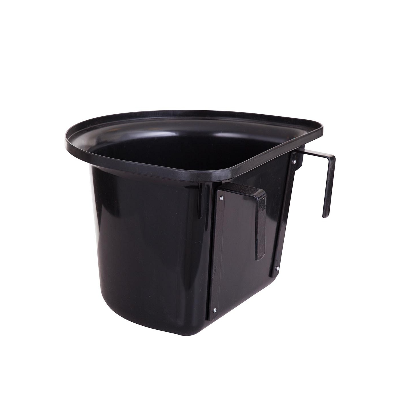 Halfronde, plastic voerbak met geplastificeerde beugels, overal gemakkelijk op te hangen.