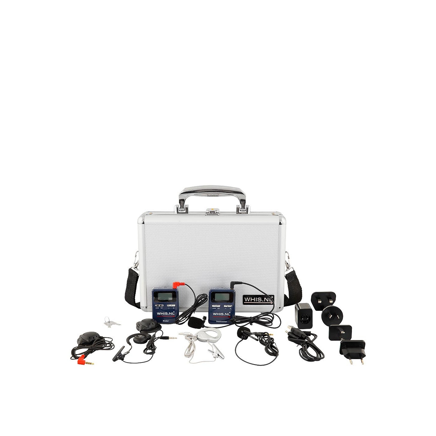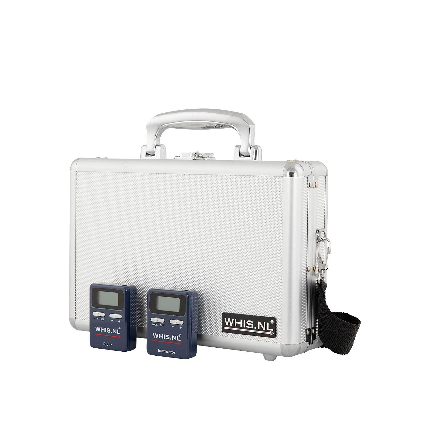 ?De WHIS Original Set biedt instructeurs de mogelijkheid om de lesruiters te instrueren zonder te moeten schreeuwen. De set bevat een zender voor de instructeur en een ontvanger voor de ruiter. Op het beeldscherm kun je zien op welke zender en ruisonderdrukking het apparaat ingesteld staat en hoeveel procent batterij er nog over is.
