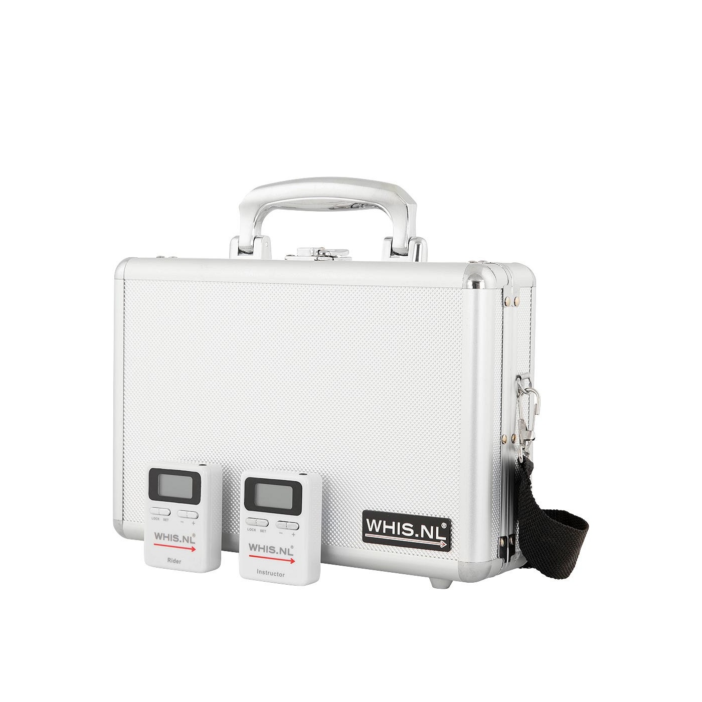 ?De WHIS Original Set biedt instructeurs de mogelijkheid om de lesruiters te instrueren zonder te moeten schreeuwen. De set bevat een zender voor de instructeur en een ontvanger voor de ruiter. Op het beeldscherm kun je zien op welke zender en ruisonderdrukking het apparaat ingesteld staat en hoeveel procent batterij er nog over is.